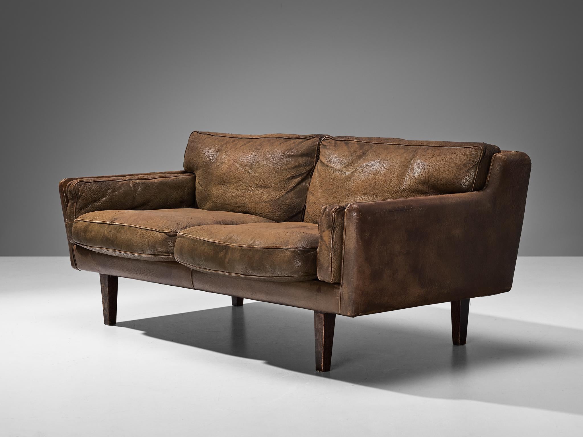 Illum Wikkelsø Two-Seat Sofa in Brown Leather