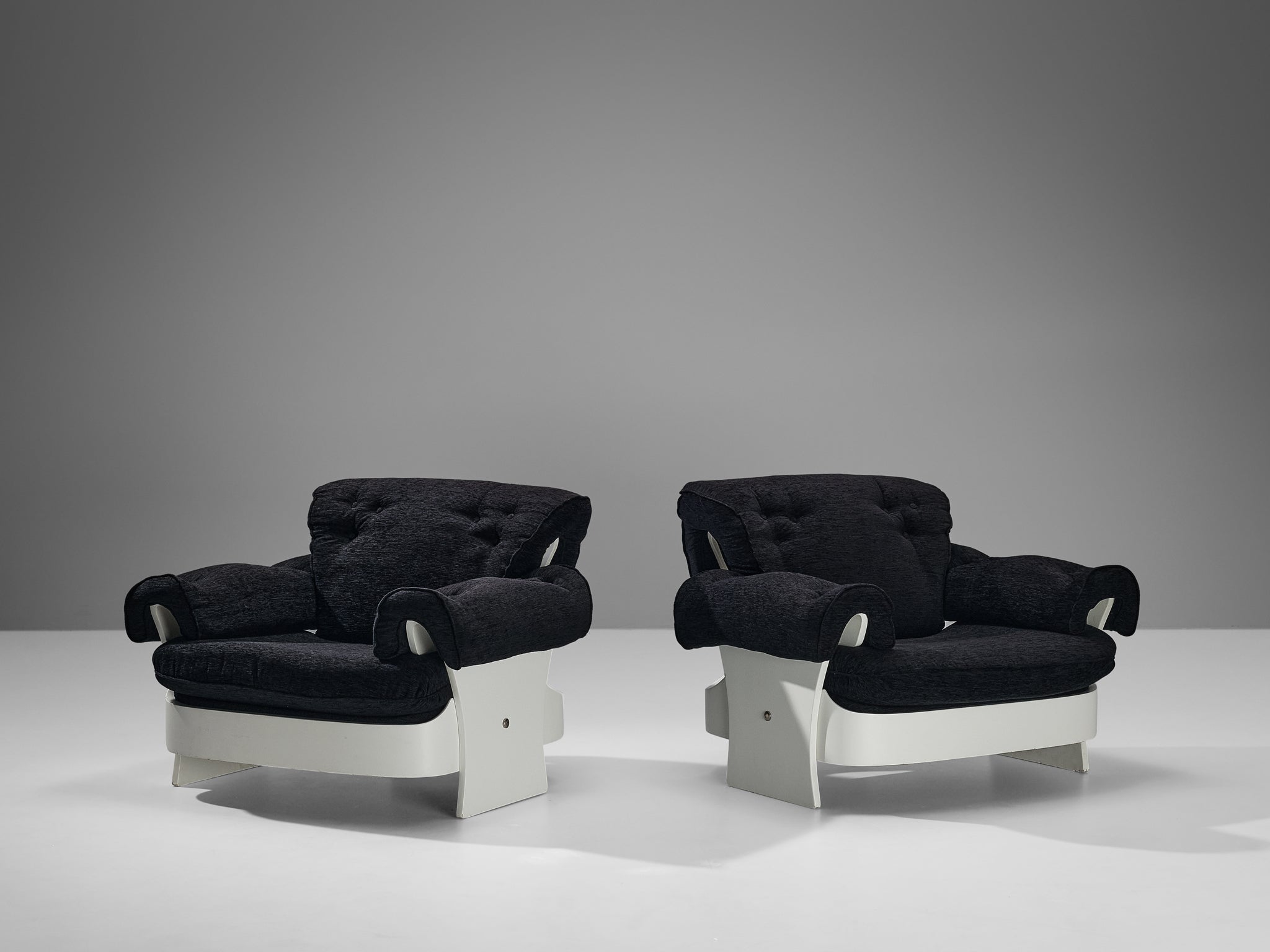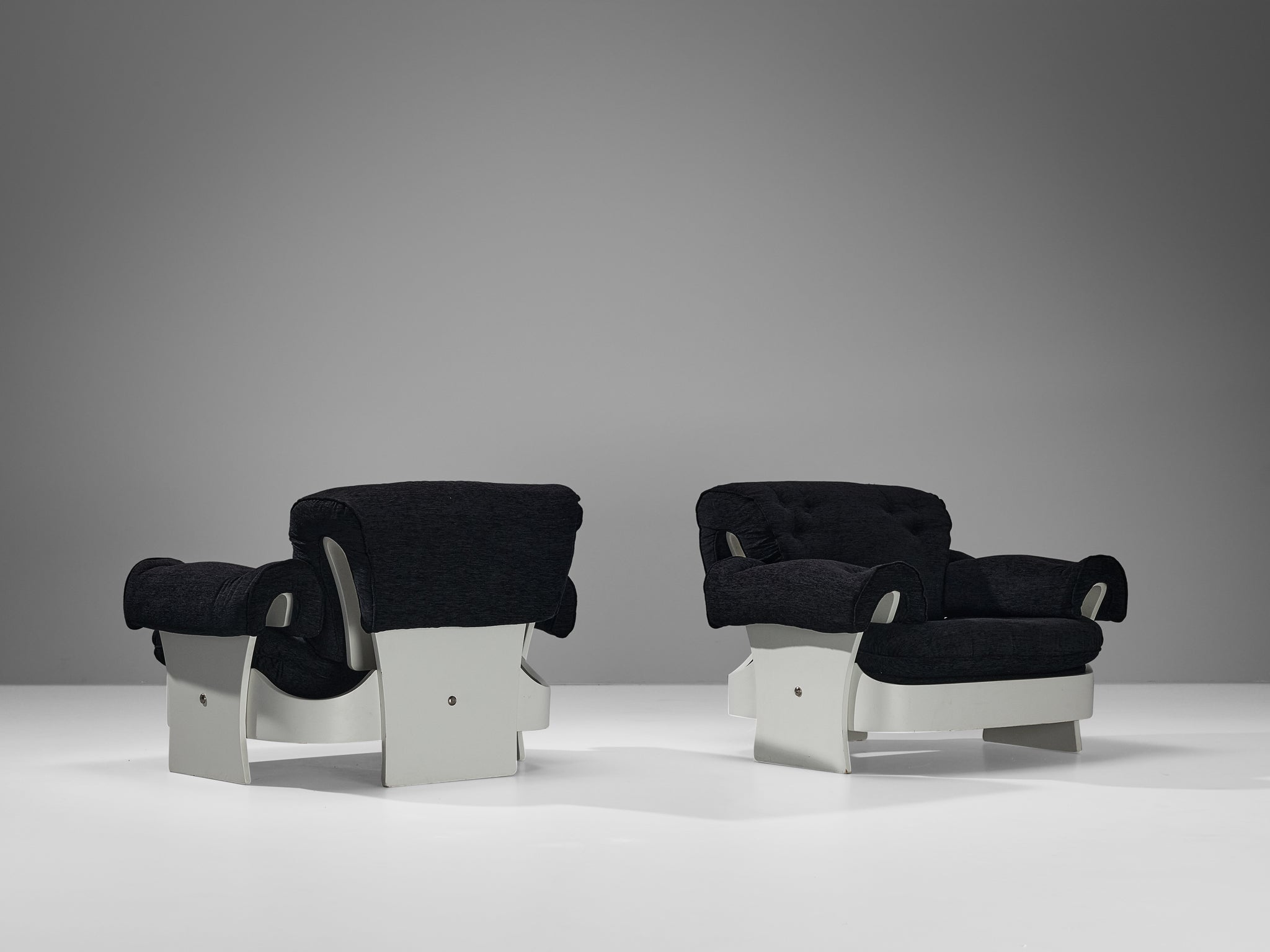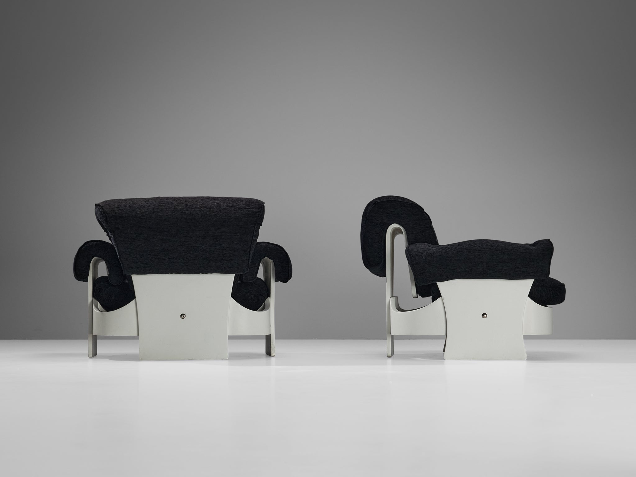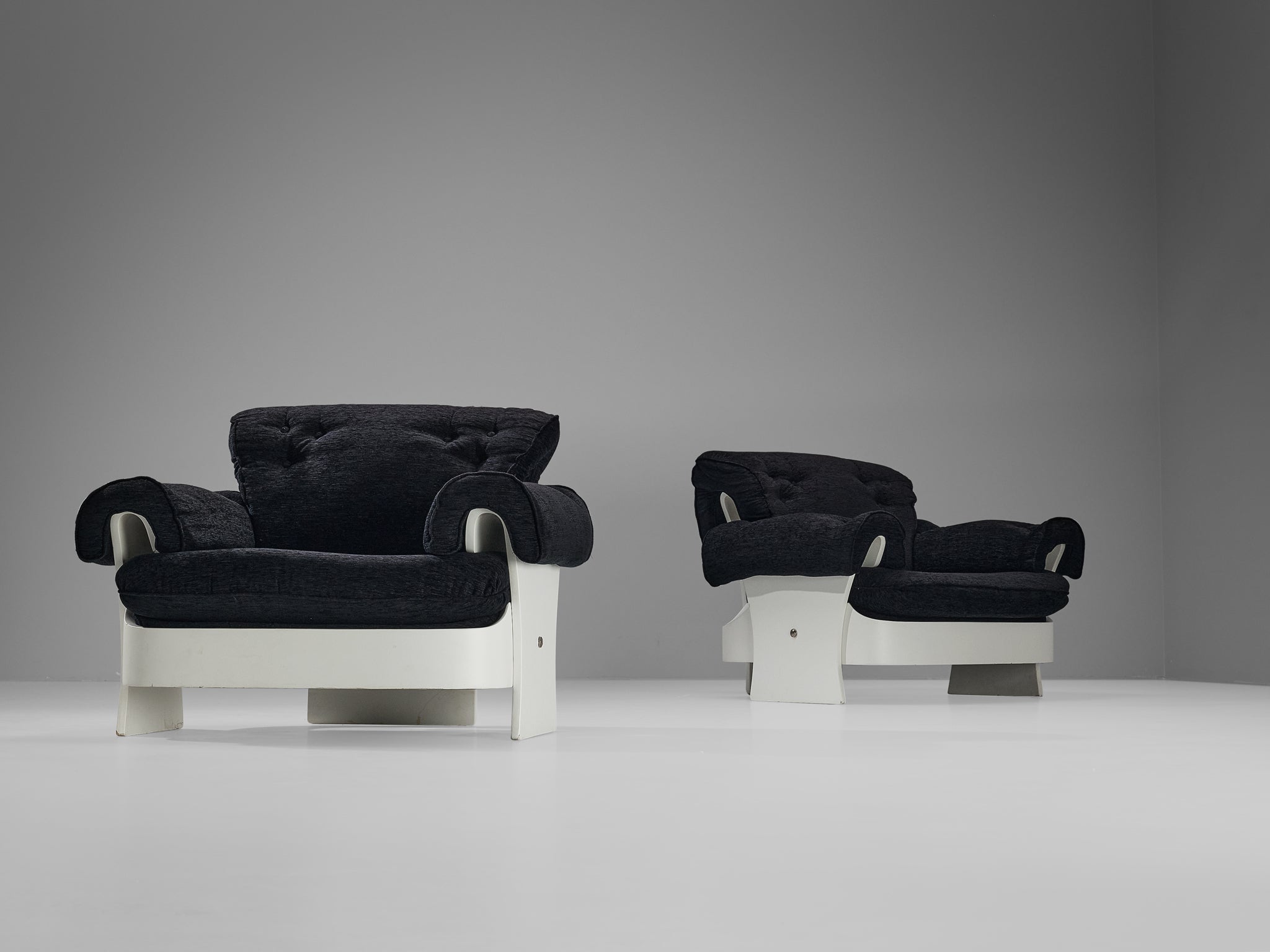 Italian Lounge Chairs in White Plywood and Black Upholstery