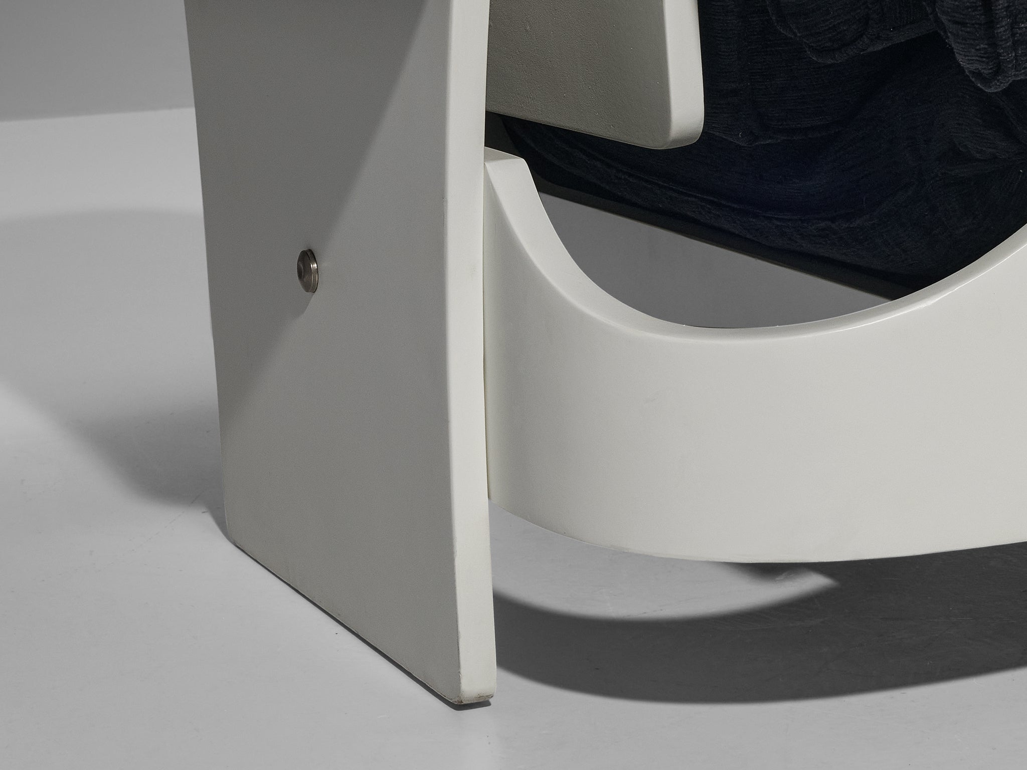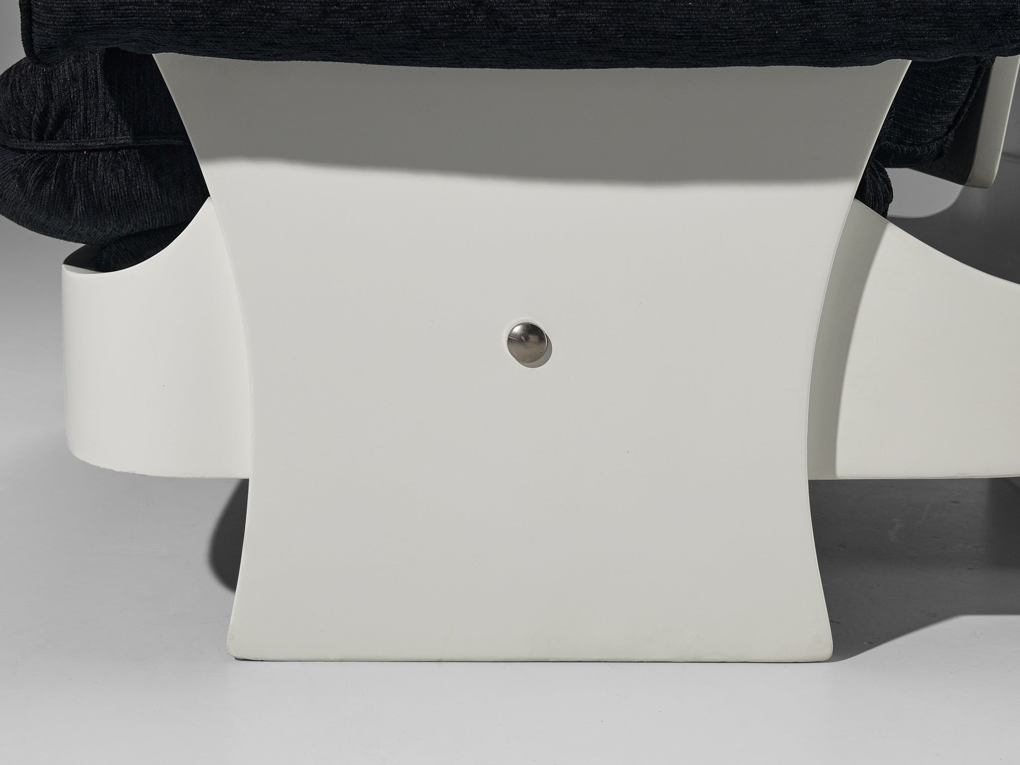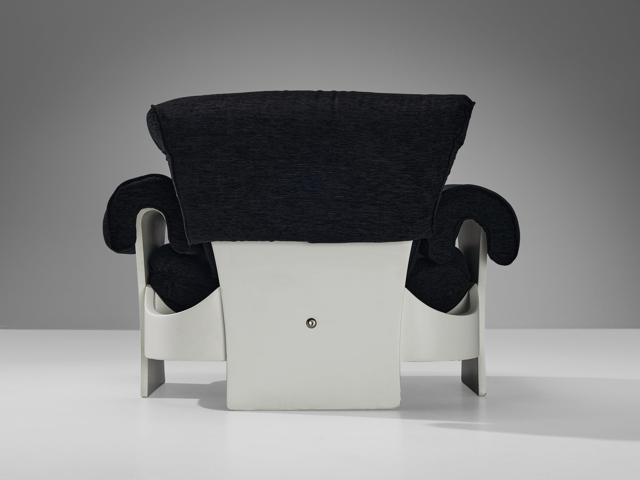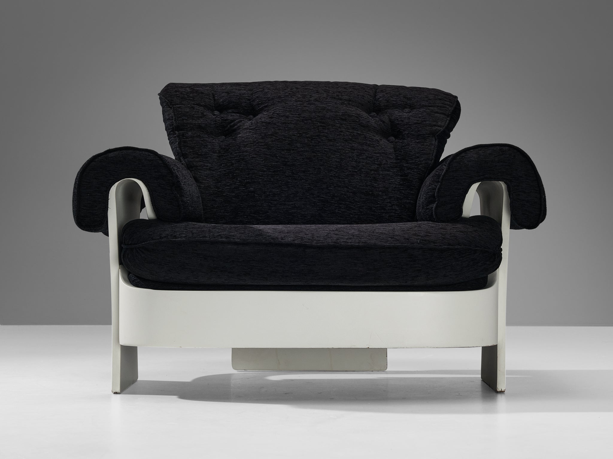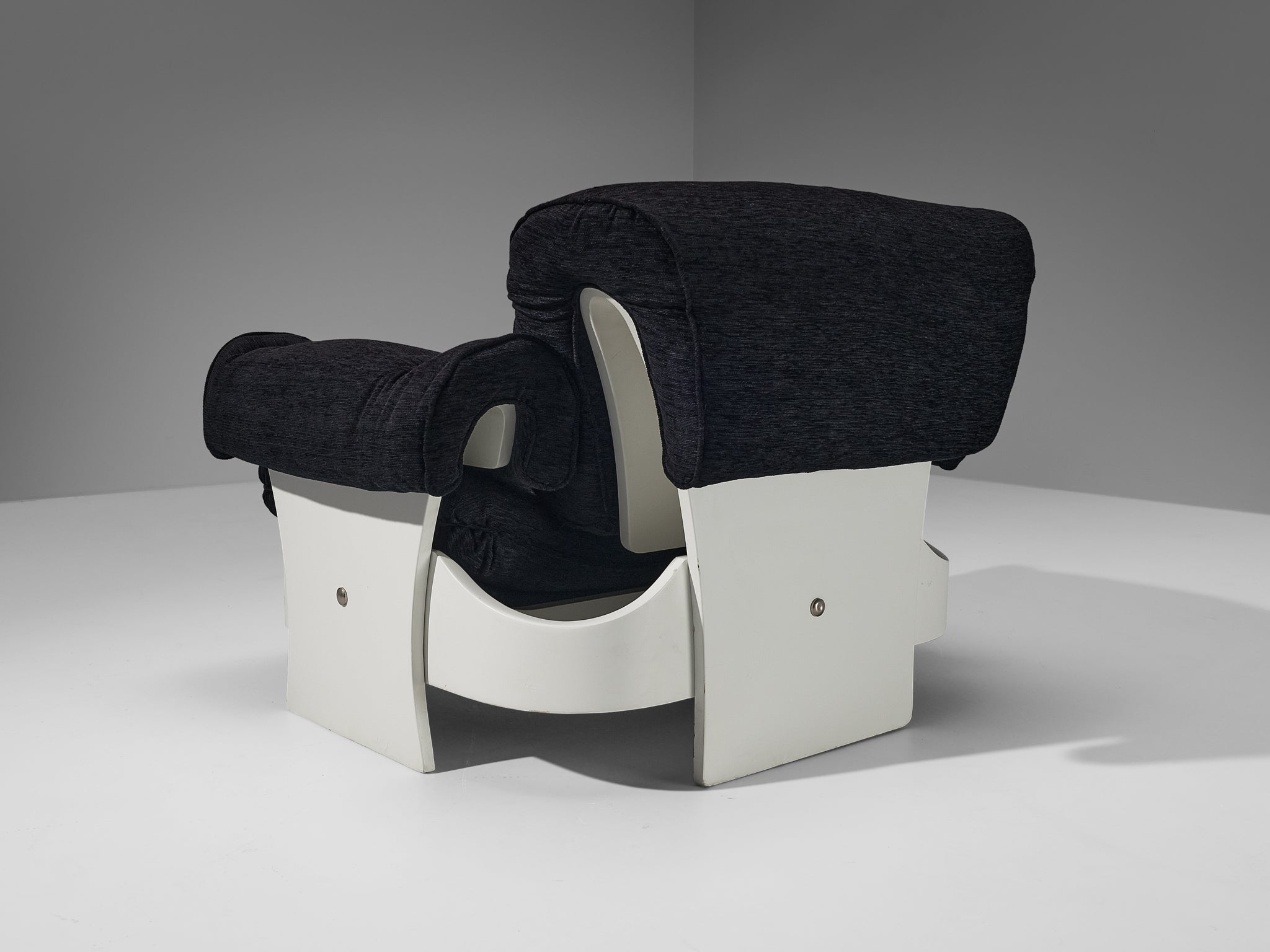 Italian Lounge Chairs in White Plywood and Black Upholstery