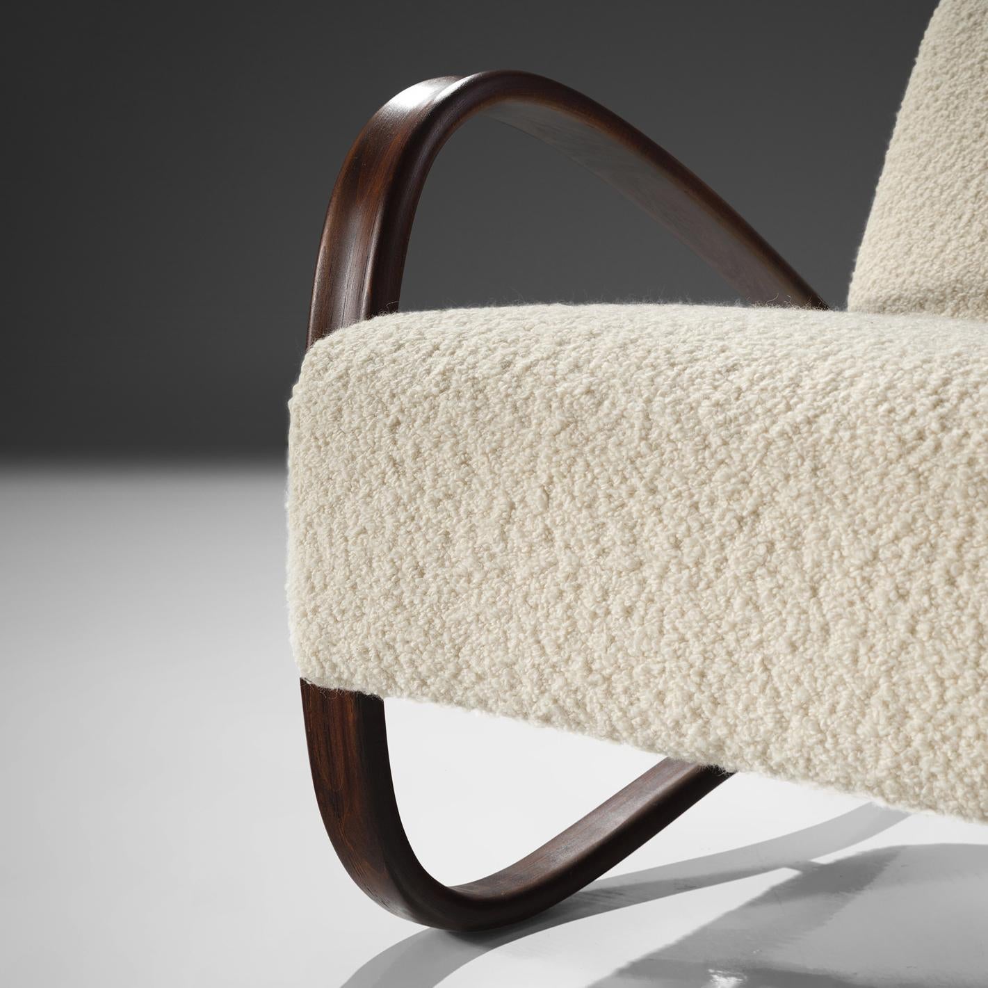 Jindrich Halabala, lounge chair, model 'H269', stained beech, Pierre Frey bouclé, Czech Republic, 1930s.