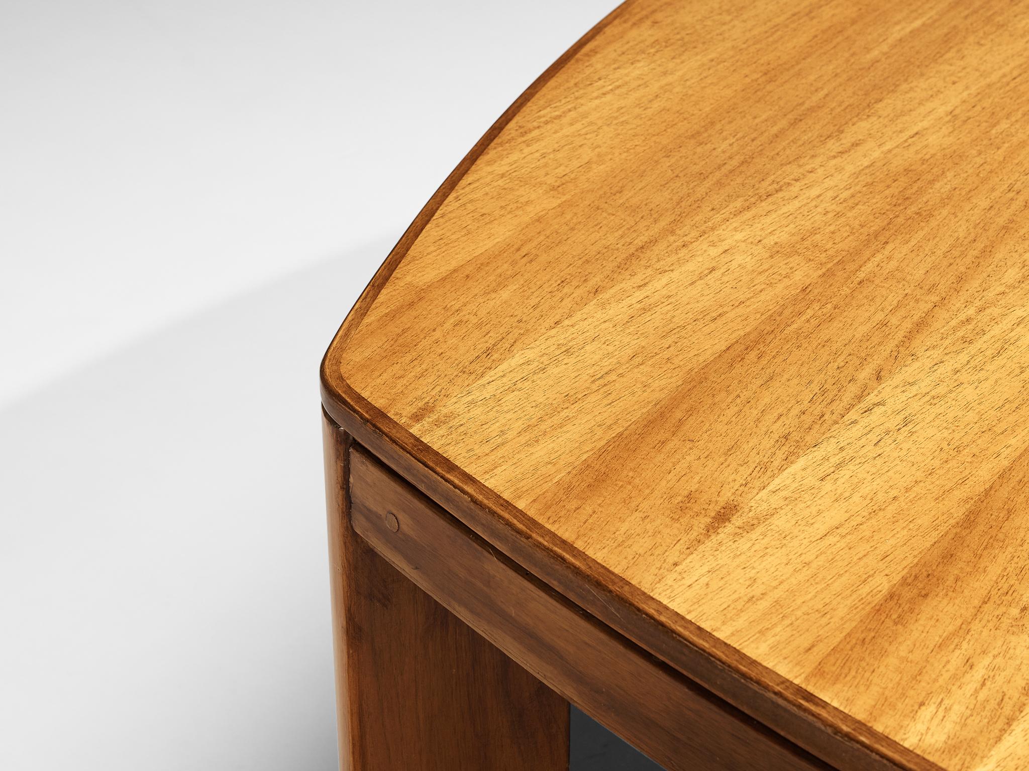 Dining or conference table, walnut, cognac leather, Italy, 1960s