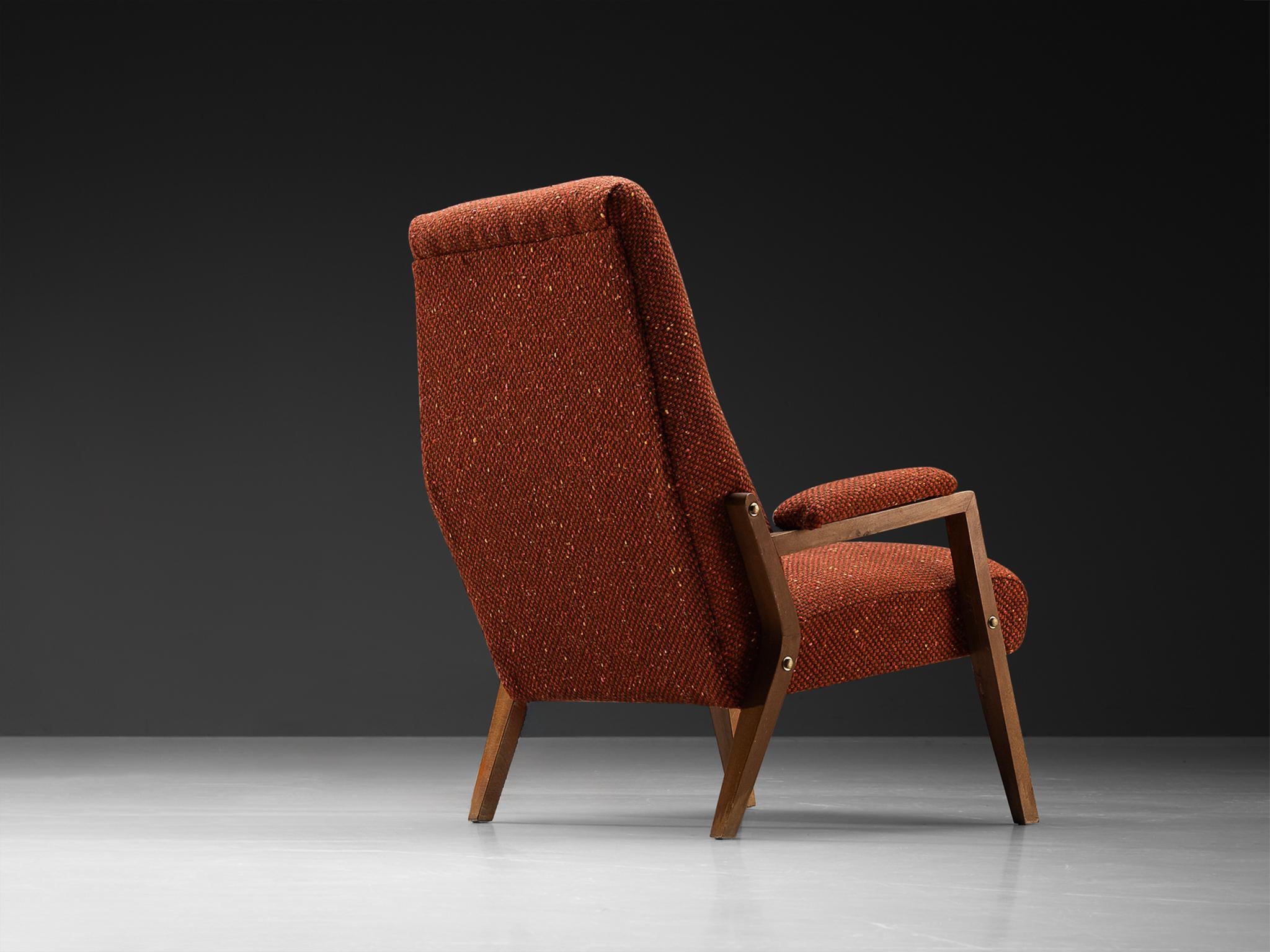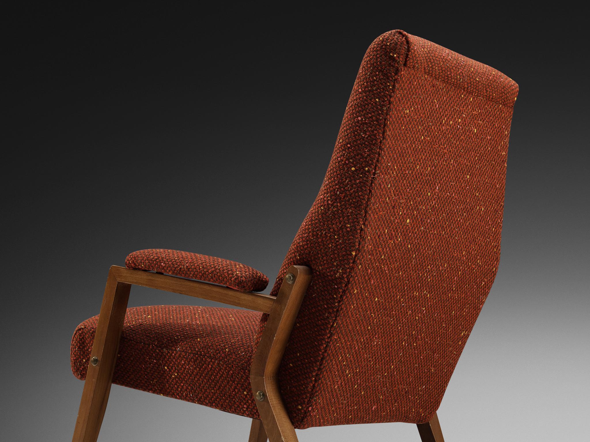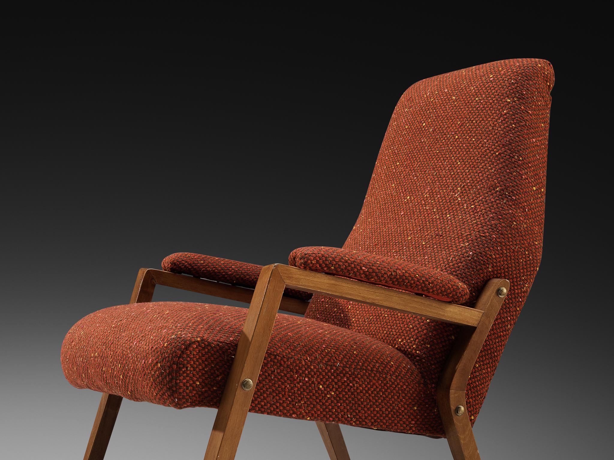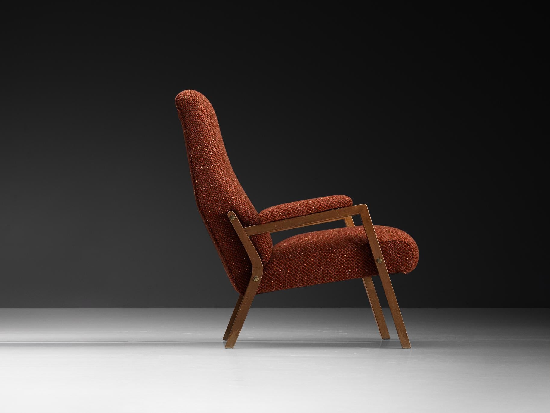 Mid-Century Modern Italian Lounge Chair in Reddish Brown Upholstery
