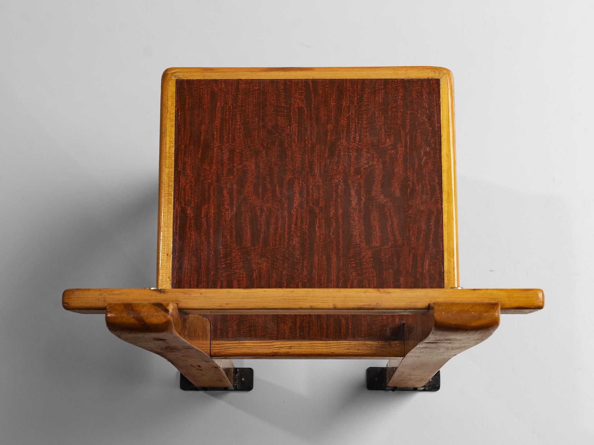 Rare French Pair of Dining Chairs in Pine with Metal Feet