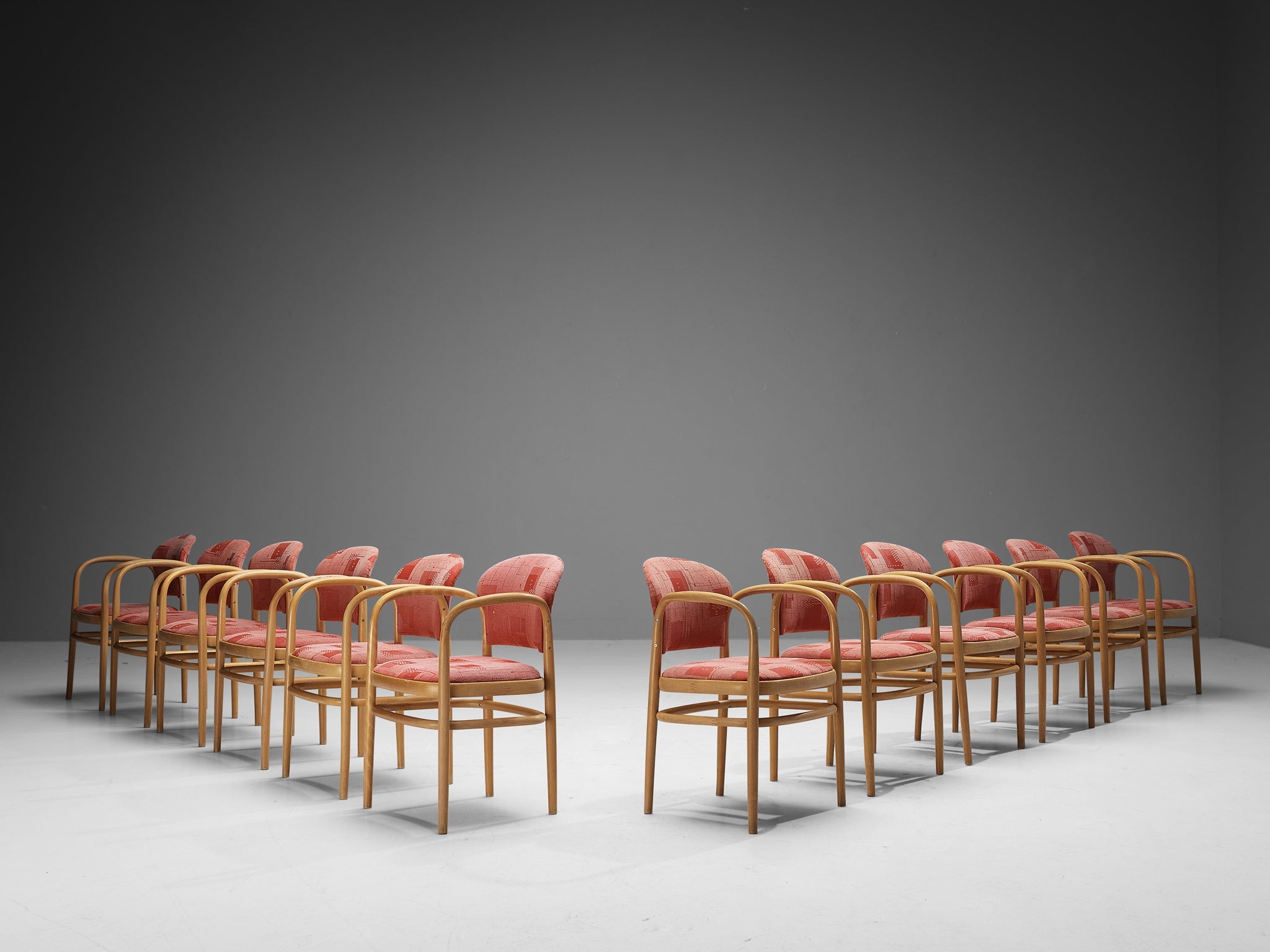 Ton, set of twelve armchairs, bentwood, fabric upholstery, beech, Czech Republic, 1960s