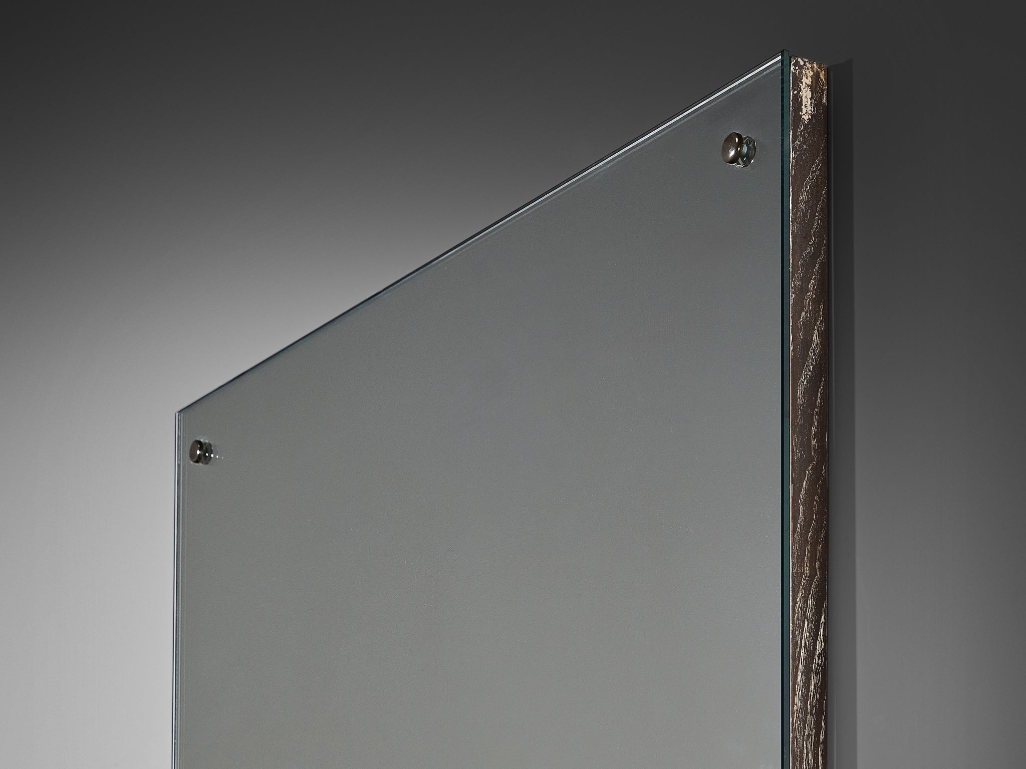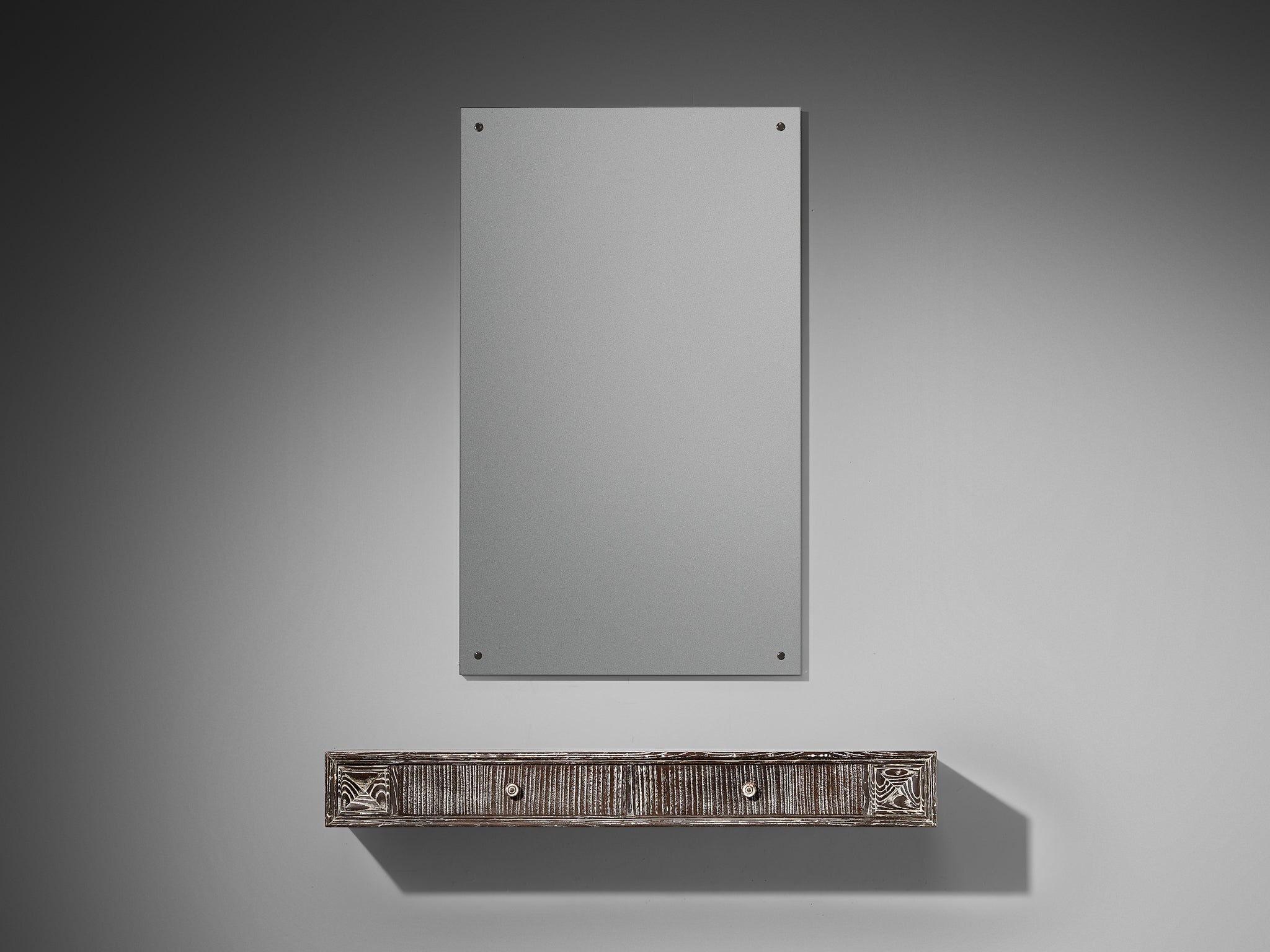 Unique Italian Wall-Mounted Console with Mirror in Cerused Chestnut