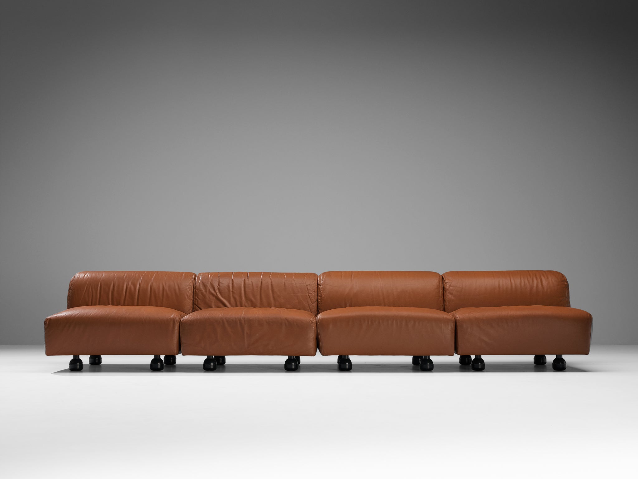 Vico Magistretti for Cassina 'Fiandra' Modular Sofa in Brown Leather